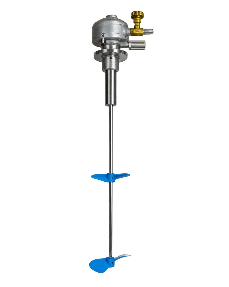 Пневматическая мешалка для однородного перемешивания ЛКМ, грунтов, клеёв, смол и вязких материалов в стандартных ёмкостях до 200 литров. Устанавливается сверху (без отдельной струбцины), приводится от сжатого воздуха, имеет два пропеллера на валу для эффективного перемешивания в полном объёме. Лёгкий запуск, плавная регулировка оборотов обеспечивают стабильную работу в производственных условиях и на покрасочных постах.