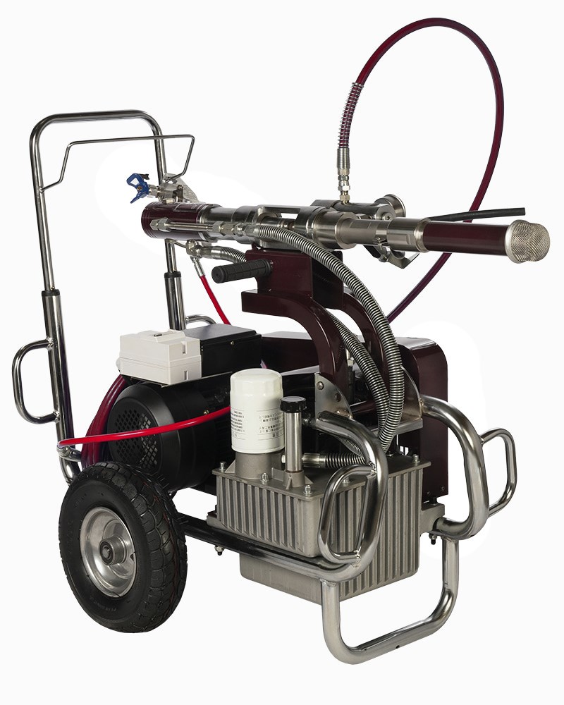 Области применения установки: Это краскораспылитель, эффективно работает на больших объемах и с вязкими и пастообразными составами; простота и надежность гидропоршневого насоса обеспечивает долговечность;
