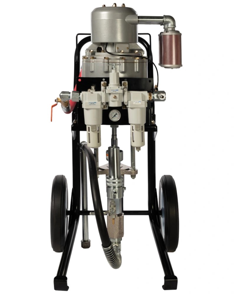 Окрасочная установка безвоздушного распыления для высоко-вязких АКЗ. Обладает максимально возможным давлением и невероятно высокой производительностью благодаря уникальному воздушному мотору способному работать до 120 циклов/мин. Относится к новой серии более мощных и простых в управлении пневматических аппаратов, способных распылять материалы, характеризующиеся крайне высоким содержанием твердых частиц. Этот аппарат предназначен для ежедневной интенсивной эксплуатации в тяжелых условиях.